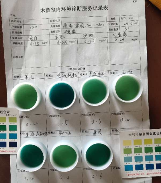 業(yè)主家新裝修完6個多月,入住時感覺有明顯不適的異味,身體不舒服,懷疑是裝修污染造成。通過查詢對比,找到濟南木童來為其提供室內(nèi)除甲醛服務。經(jīng)木童工程師上門診斷,確定業(yè)主家主要甲醛污染來源于裝修中使用的家具內(nèi),需要采用木童人造板甲醛清除劑——強力除醛劑第三代、家具甲醛清除劑等進行治理。異味來源于油漆家具以及生態(tài)板家具上采用木童家具除味劑進行全面徹底治理。